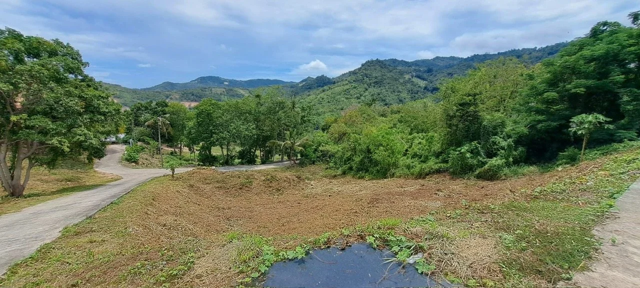 577 sqm freehold hillside plot (MH08B) in Maenam, Koh Samui. Peaceful and private, surrounded by nature with concrete road access, utilities, and valley views — ideal for a villa project or investment. Priced at 1,442,975 THB.