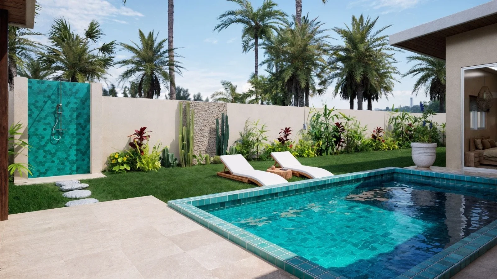 With a large garden, shaded sala and lounge chairs, you’ll never want to leave your own hotel-living experience. Large bay doors and a clever design means you’ll maximise your pool and garden view, and allow plenty of natural light to filter in. Your living room will feel spacious and grand and the indoor/outdoor flow will be seamless and highlight the natural aesthetic that surrounds the villa.
